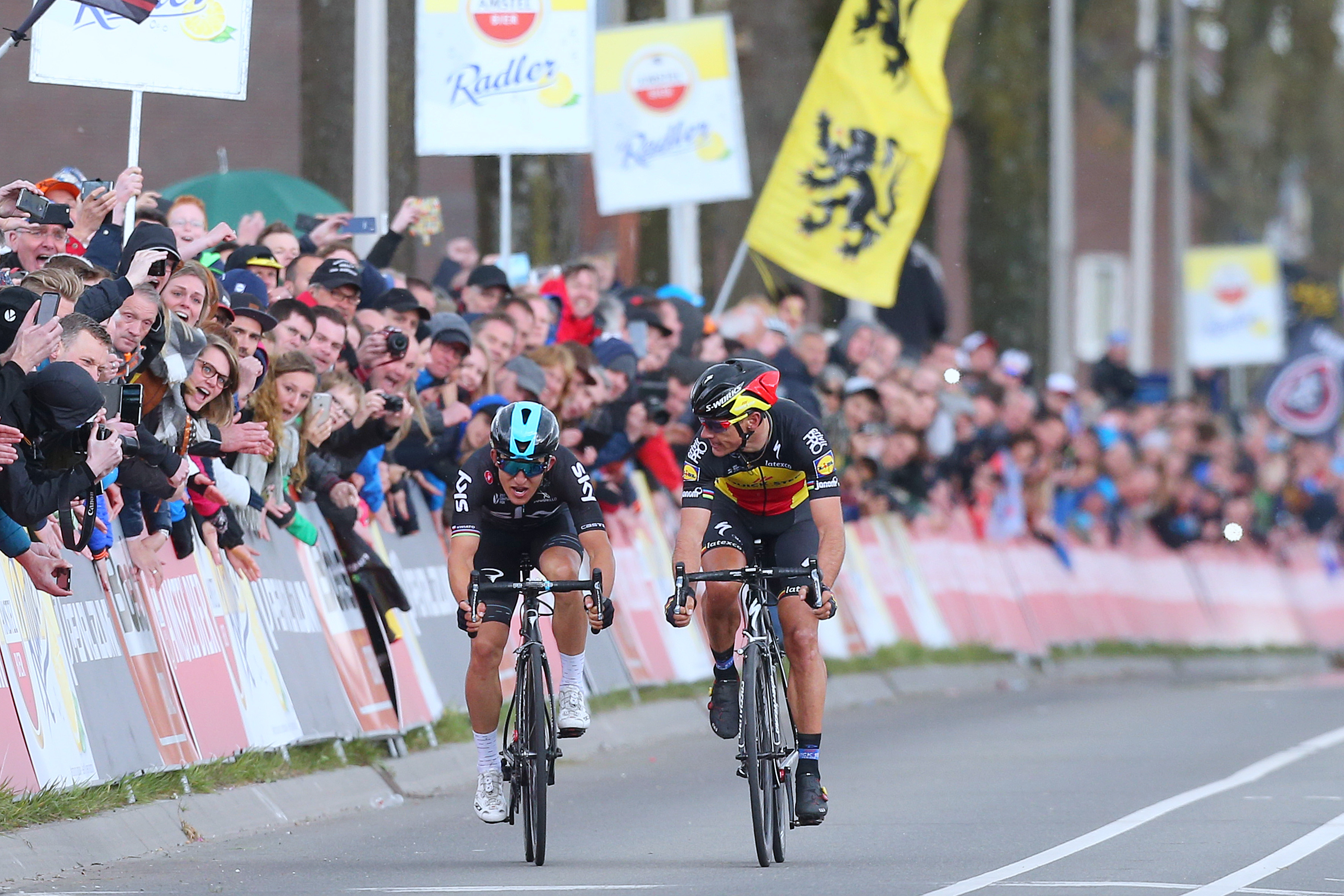 Michael Kwiatkowski is het daarmee eens. De Pool probeerde Gilbert te verassen met een aanval op enkele honderden meters. ,,Dat lukte aanvankelijk maar hij kwam de laatste 50 meter zo hard terug. Het is een kampioen, dat moeten we niet vergeten.” Michael Albasini baalde licht. ,,Ik kon niet bij die twee komen en word hier beste van de rest. Ik zat te hopen op een sprint met de kopgroep, maar die kwam er helaas niet. Deze vorm bied wel perspectieven, ik kijk uit naar De Waalse Pijl en Luik-Bastenaken-Luik.”