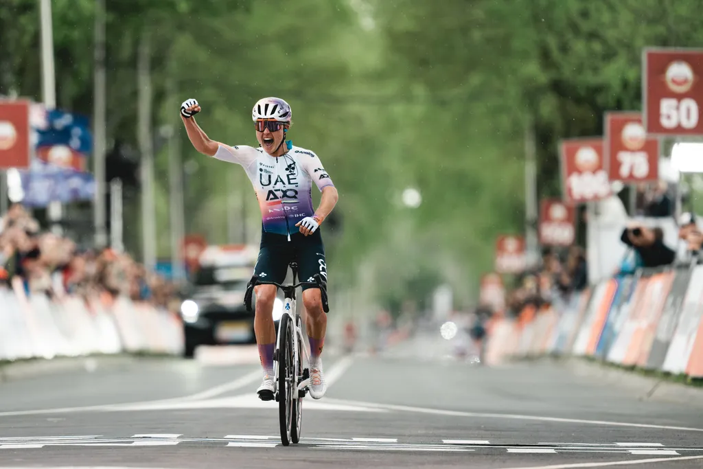 VALKENBURG - 19 april 2026. Paula Blasi heeft de hele wereldtop van het vrouwenwielrennen verrast met een winnende solo van ruim twintig kilometer in de Amstel Gold Race. De 23-jarige Spaanse wist in de finale haar voorsprong knap te verdedigen en hield, ondanks een dappere poging van Tour de France Femmes-winnaressen Demi Vollering en Kasia Niewiadoma op de laatste passage van de Cauberg, een kleine halve minuut voorsprong over.