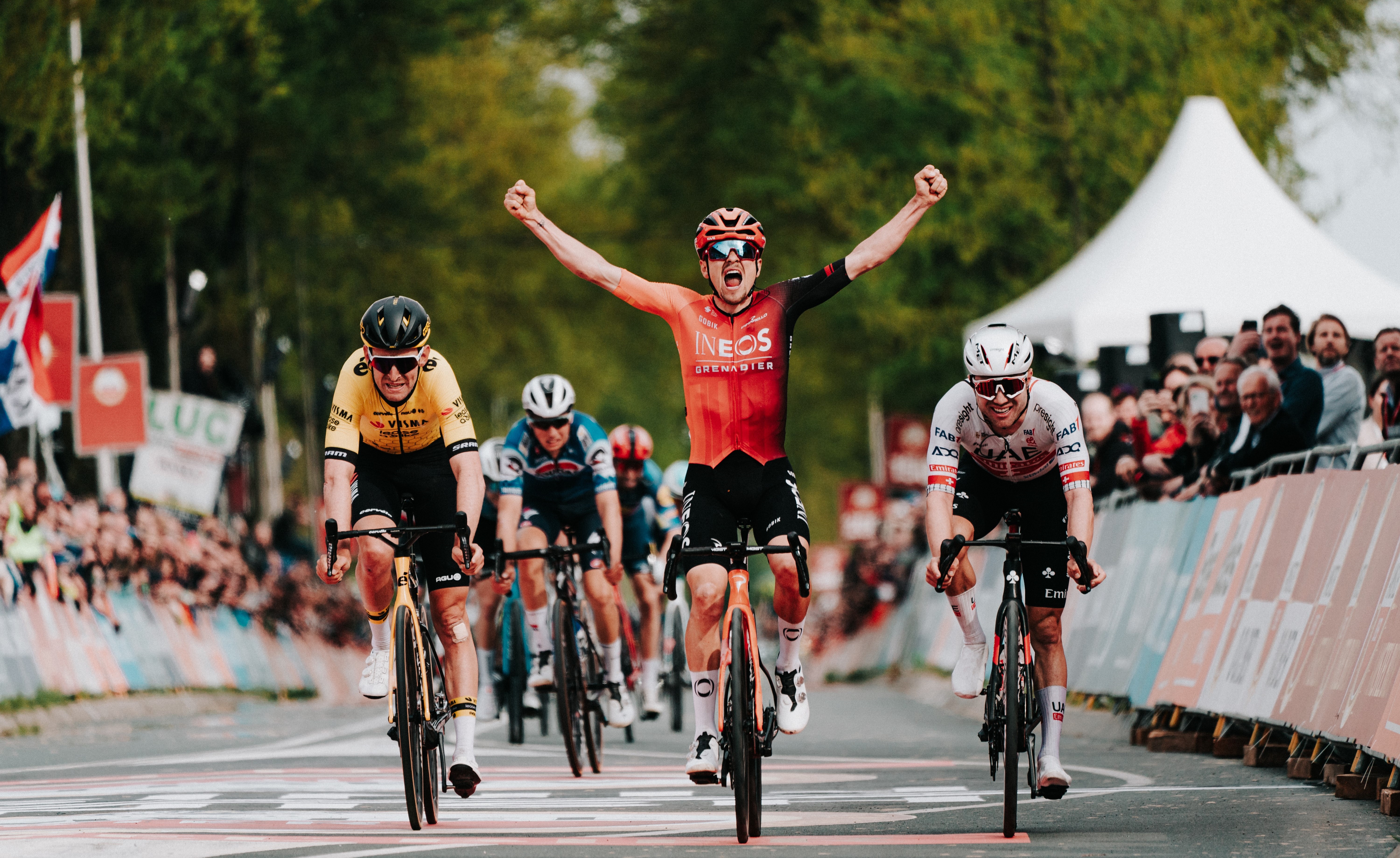 Tom Pidcock weet na tweede en derde plek de Amstel Gold Race te winnen