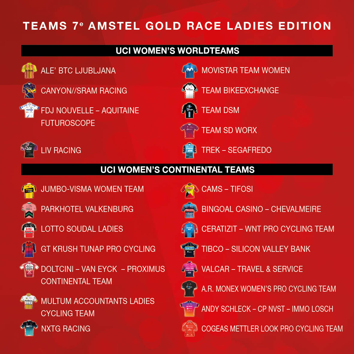 De organisatie benadrukt nogmaals om de race vanuit huis te bekijken en niet naar Limburg af te reizen. De Amstel Gold Race en Amstel Gold Race Ladies Edition worden dit jaar extra lang uitgezonden op NOS.nl en NPO1, zodat iedereen vanuit de huiskamer Nederlands enige klassieker volledig kan volgen.